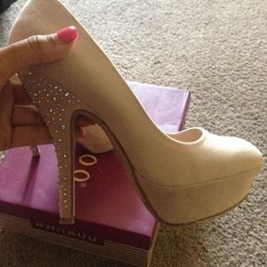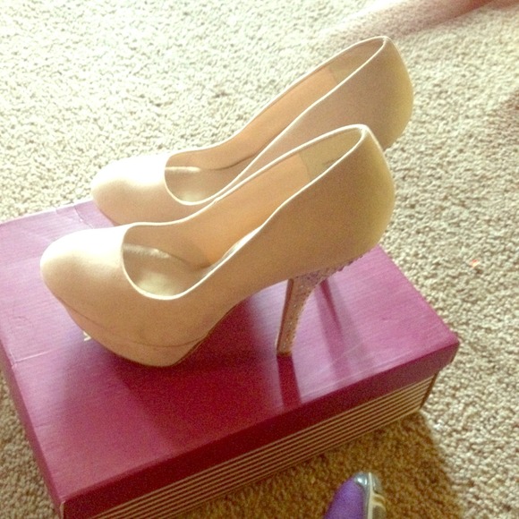 Cream colored heels with rhinestones covering the whole heel! Super cute shoes!!