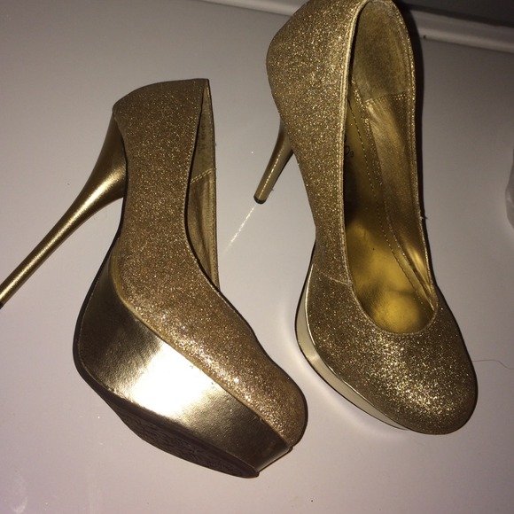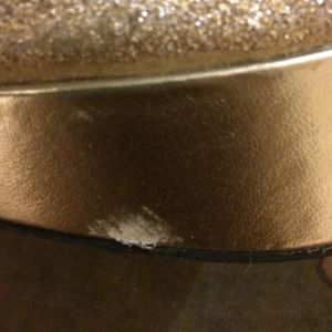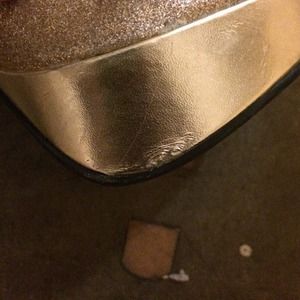 Gold glitter heels! It has some slight scuff marks on the side of the left heel.