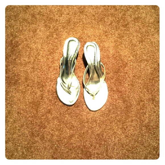 Wore once for prom. VERY nice for girls that want comfortable cute heels. Silver with glitter on the straps.