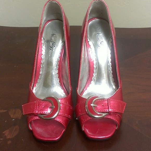 Red Patten Leather buckle toe 2.5" heel. Not worn a lot.