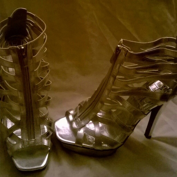 All silver zip up pair of heels new never been worn no tags very lovely to wear out on the town are a party