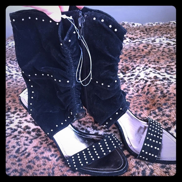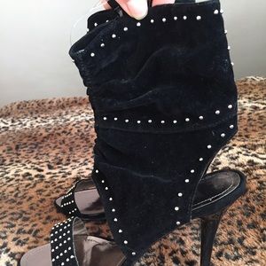 🆕 Cute black suede booties with back heels cut out & blingy silver studs! Heels measure 4". Never worn!