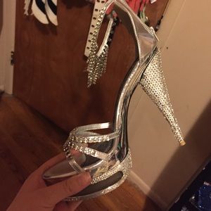 Silver bedazzled 5 inch heels. Wore once for homecoming, perfect condition.