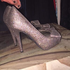 They're 3 inch heels. With a bow in the front. I used them a least twice. Still in pretty good condition.