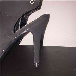 Like new 3 in suede heels. Open toe & opened in the back like shown. Gold zipper on one side. It's tie up in the back so you can adjust how tight or lose it is.