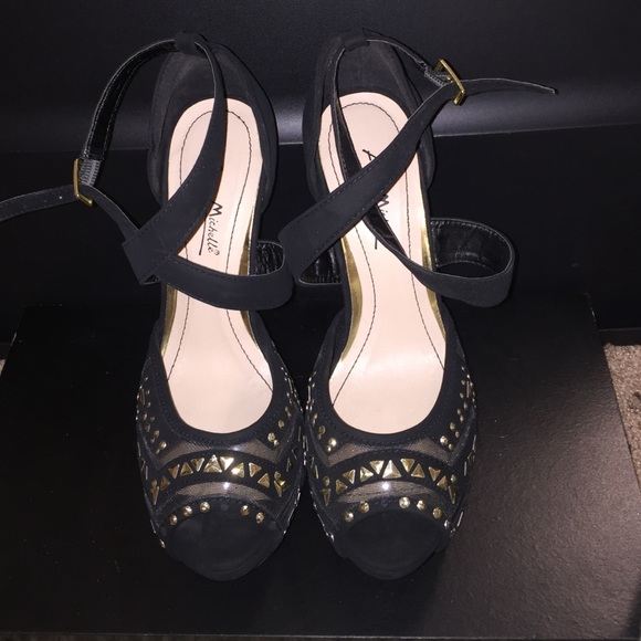 Black and gold heels, never worn, size 7 great condition!