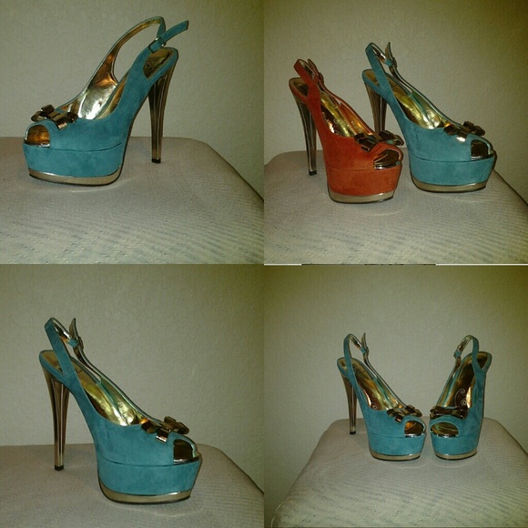 Sling back heels, two choices of Teal green or dark Orange, 5in heel, comes in different sizes. Very comfortable fit! ?
