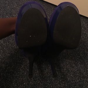 Blue Suede Jessica Simpson heel . My most comfortable heel. Approx. 4.5 inch. Worn about 3 times for presentations. It's a 9 1/2 and fits perfect on my foot although my foot ranges from 8 1/2-9 1/2. Like new !