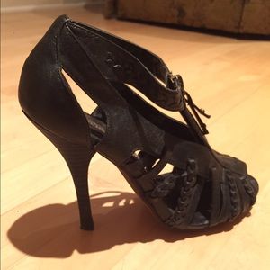 Very cute black heels by Steve Madden. They zip up in front and have a 4 inch heel