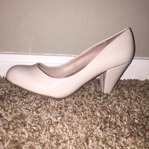 Adorable, close-toed, bone colored heels. Have only been worn once and are in great condition. Short heels that are super comfortable and fun to wear!!