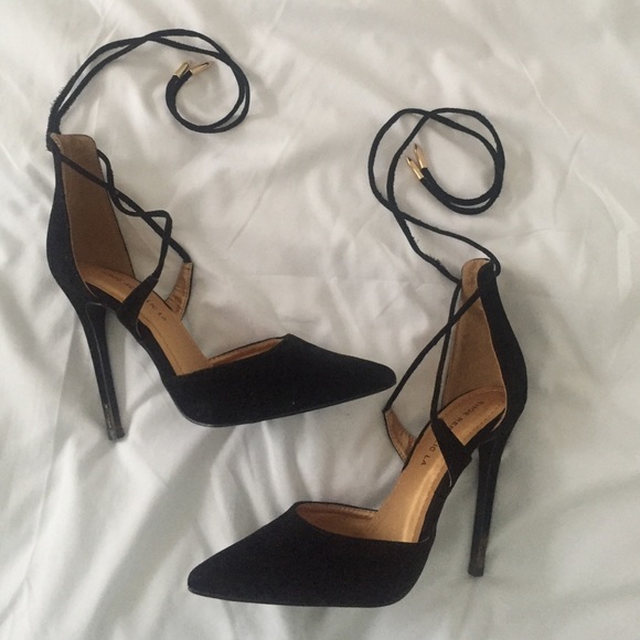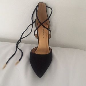 Classic black heel, with a cute wrap around ankle detail! Only worn once for a wedding!