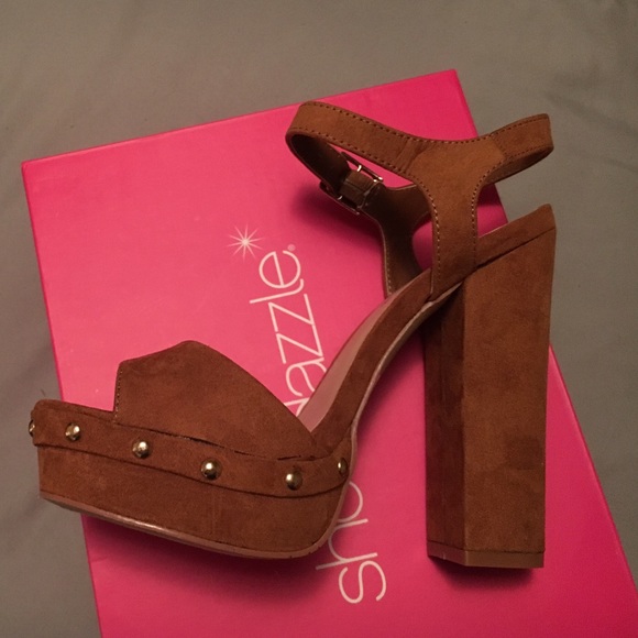 I have a brand new pair of size 7 shoe, color is a cognac, really cute and has some studs on the edge of shoe.