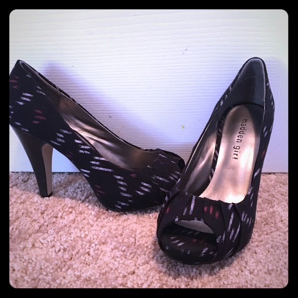 Black heels with white and red dashes