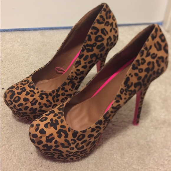 Leopard print heels with pink bottom never worn just threw box away .