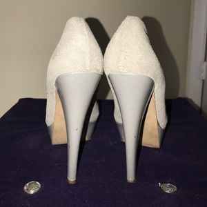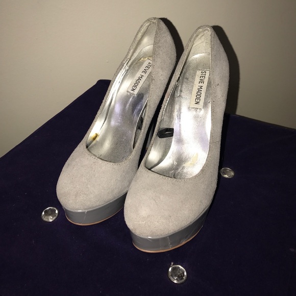 Grey Steve Madden 6 inch 1 inch platform heels