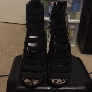 Cheetah Prints Heels , Black And Cream Color .