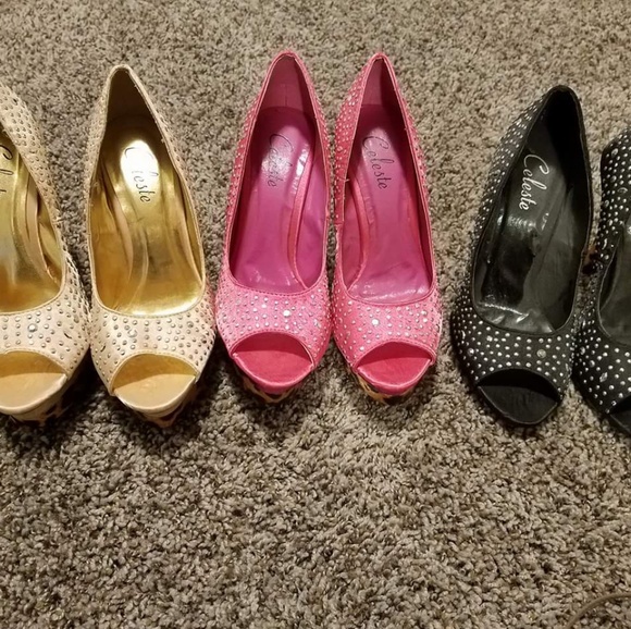 Black heels worn once, pink and gold brand new