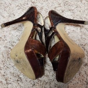 Two tone brown heels! Worn a hand full of times due to an injury I can no longer wear! There a few Marks on one heel see pic