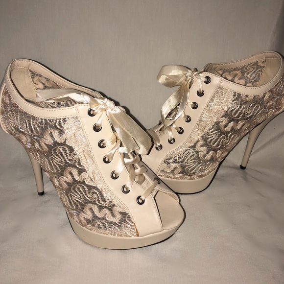 Lace up nude booties with a platform heel! Only worn once brand new condition!
