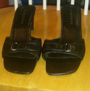 These short black heels have buckles on their front straps and a low, but sturdy heel. They're best for more casual settings like cookouts and girls' nights out. These look great with a pair of capris/jeans