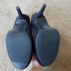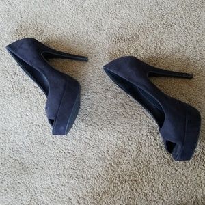 Brand new 4 in black peep toe pumps with an in of platform. I love these. But they are just too big for me! I've tried everything to make them more comfortable being almost a full 2 sizes too big! Never been worn outside. Nwot