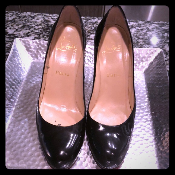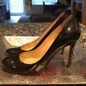 Classic Black Christian Louboutins Heels Transition seamlessly from daytime to evening with Christian Louboutin's delicate, subtly retro Simple Pump in black patent leather. Low-cut vamps gracefully reveal the foot in sober, sensual curves resting on an 85mm heel.