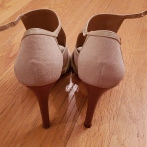 Cream color peep toe small buckle heel