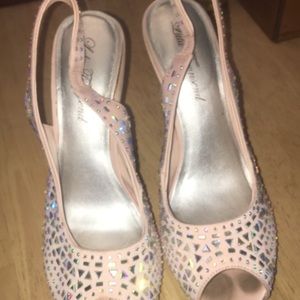 Pink bedazzled Lulu Townsend Heels, worn twice, great condition besides the toe area which you can’t see when wearing.