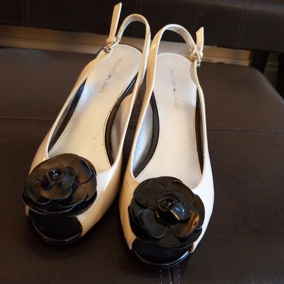 Black and bone colored slingback with a flower