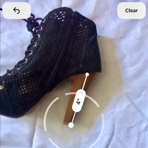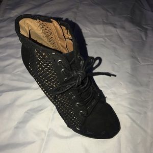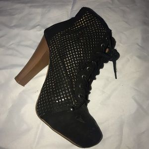 Mesh pattern heels. Approx 4inches. Slightly worn. Black.
