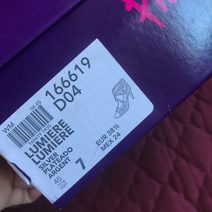 Silver heels, size 7. Only worn a couple time, good condition.