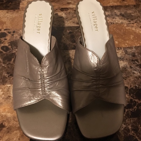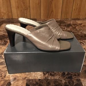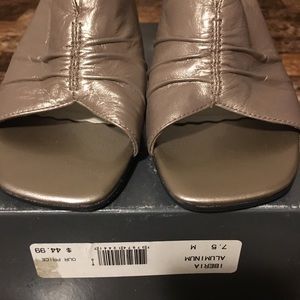 3 inch metallic colored heels. Never been worn but box lid has been displaced during move. Smoke/pet free home.