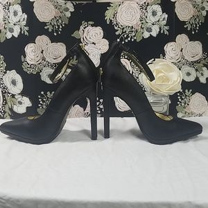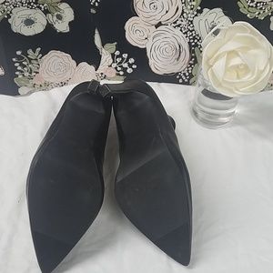 Bought for a night out and end up not wearing them. Brand new, it didn't come with tags. Sexy ankle strap heel with a matte black fabric. Sexy pointed tip 4 inch heel.