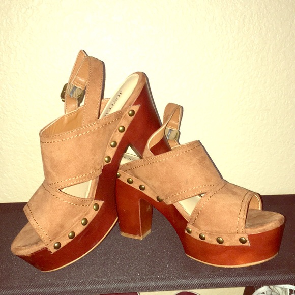They are very comfortable easy to walk in heels with suede straps, brown soles.