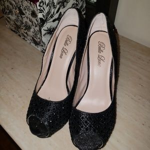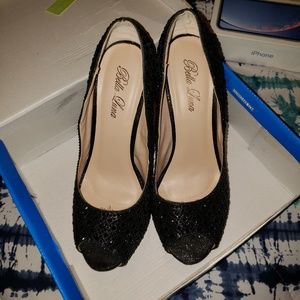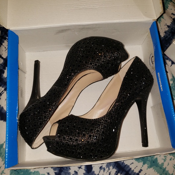 All blk rhinestone studded and blk glitter, In excellent like new condition, got from a small boutique for my wedding, wore for about hr...5-6 inches, no stones missing