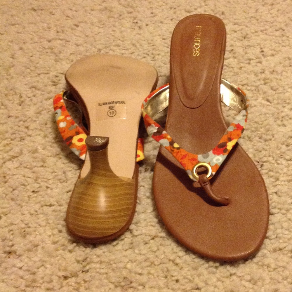 Colorful strap. Brown. 1" heels. Sandals