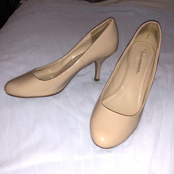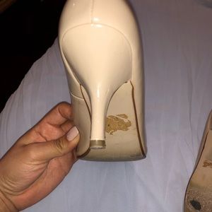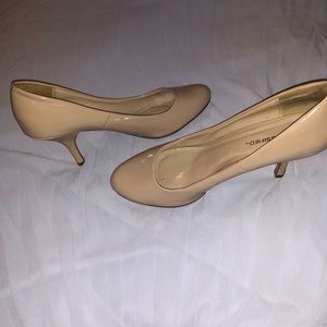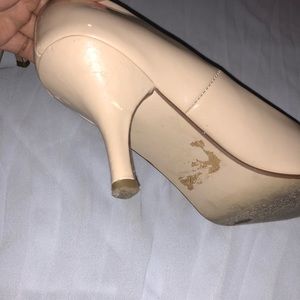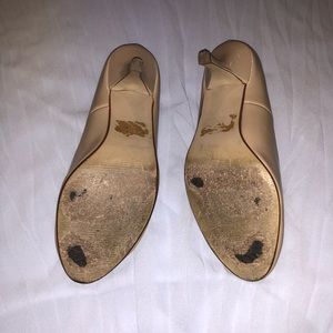 Heels, small scratches on the heels, over all good condition, more of a narrow fit, runs a bit small. Size 9 but fits more like a 8.5