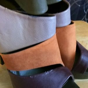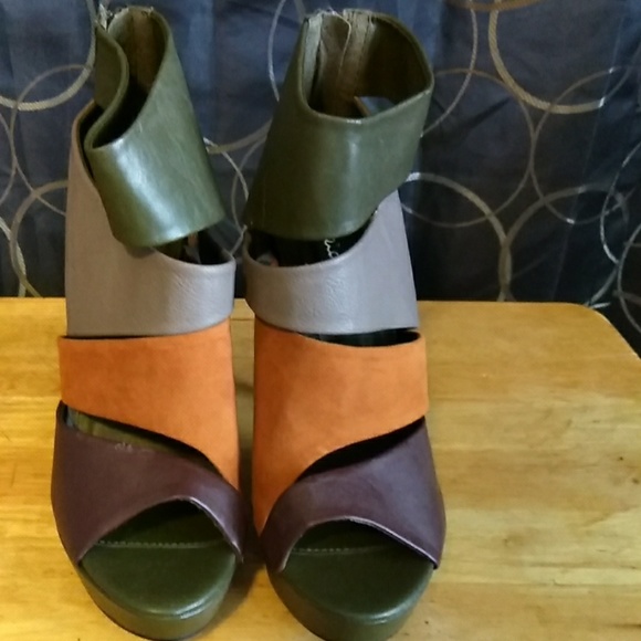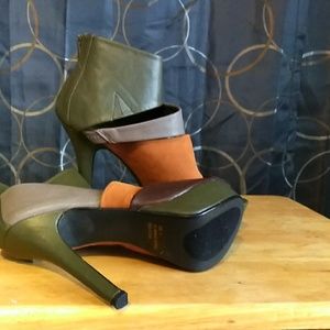 Beautiful heels, Olive green, grey, rust. Zipper in the back.