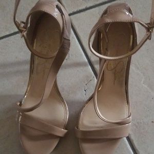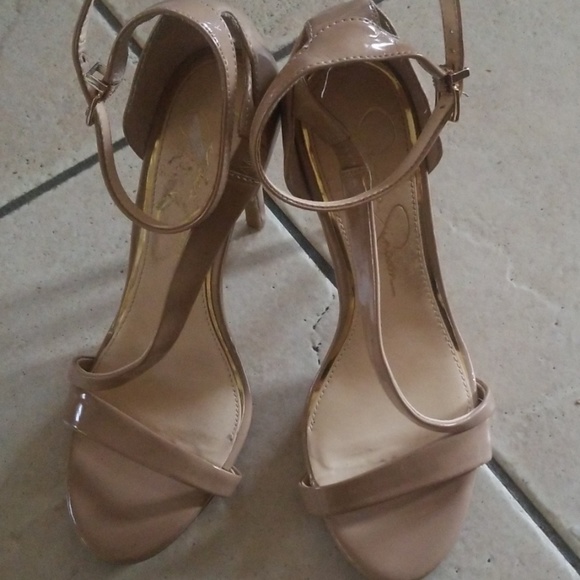 Brand new Jessica Simpson sexy stilleto heels. Tanish cream with a trace of gold strip along strap