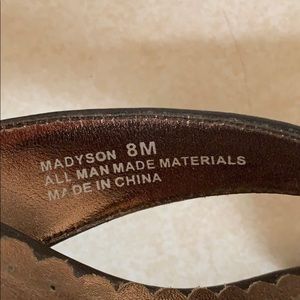 Like new heels. Wore once for a wedding. Stored in box. Size 8M. Brown.