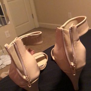 Cute heels worn 3 times for special occasions, still in good shape, zipper and elastic ankle part. About a 2.5 inch heel