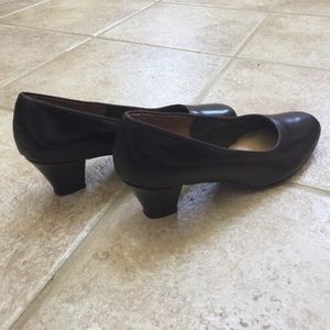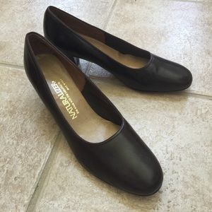 Never worn, very narrow dark brown dress work shoes. Torn on inside a little from packaging.