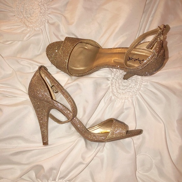 Size 7. Gold sparkly heels. Worn a couple of time. Still great condition.