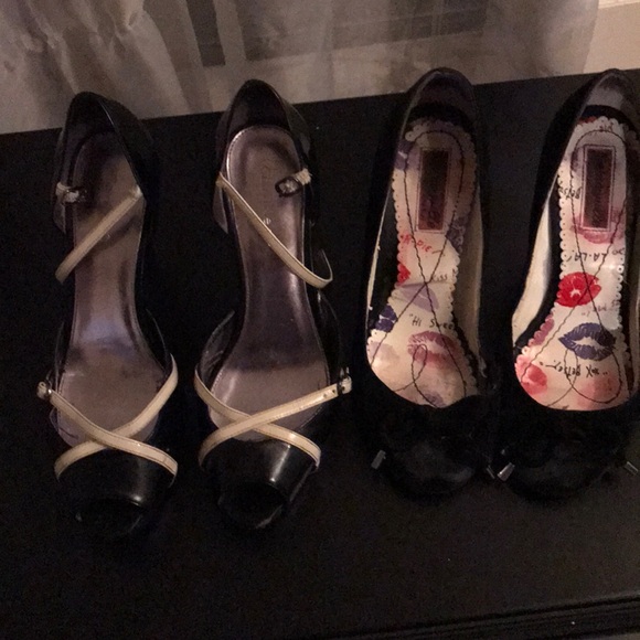 Calvin Klein and Betsy Johnson black heels. Used but still have much life in them. They are really cute on and very flattering. Price for both and I can’t put both brands in the description