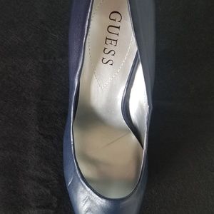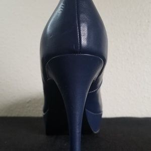 Grow an inch in these Navy Blue, almond toe silhouette slip on design heels. -heel size 4"