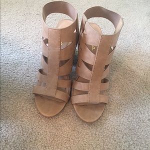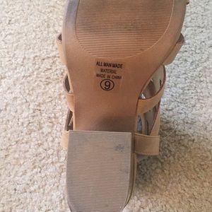 Only worn once! A nice tan color that can go with jeans or a dress. If in a hurry it is easy to slip on!