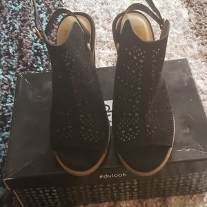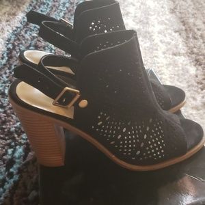 Wore once size 6 there open toe heels block heel. Black and tan color