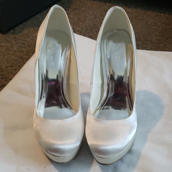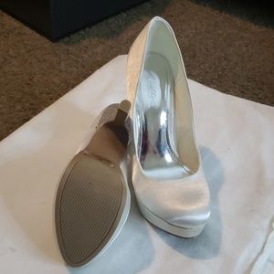 Gorgeous!!! 😍 Satin with Rhinestone heel, never worn. 5 inch heel.