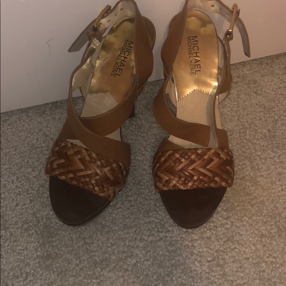 Michael Kors heels. I have personally never worn them. I bought them from a friend, they don’t have a size listed but fit me perfect. I usually fit in a size 7-7 1/2. Excellent condition.