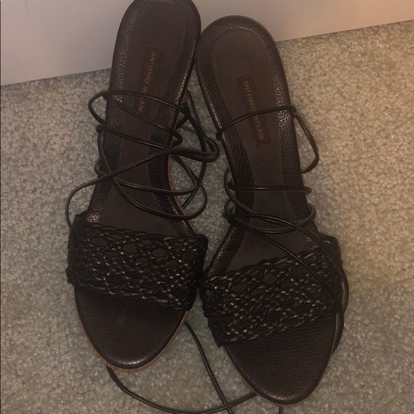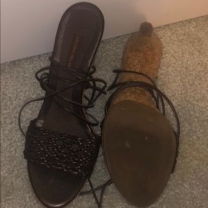Brown lace up strapped heels. I’ve never worn, bought them from a friend. Super cute and in good condition. No size listed, they fit me well and I run from a 7-7 1/2.